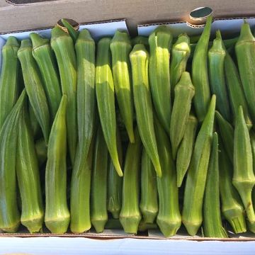Delele F1 is a medium sized Okra, with dimensions of 13–18 cm long and 18mm - 22 mm thick. Delele F1 has a shiny, straight green hexagonal ribbed fruit that grows on a very tall plant that has resistance to Yellow Vein Mosaic Virus and Leaf Curl Virus. When setting fruits in the cool season, Delele F1 retains most of its length.