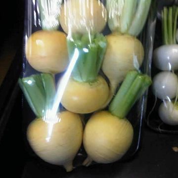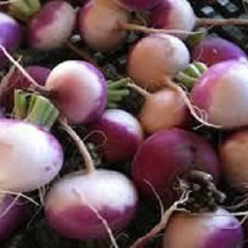 In turnips we have different shapes and colours. Copper Globe is a baby yellow. Limey is a baby with white & green shoulders. Matti is a baby with white and purple shoulders. Rubyball F1 is a baby red with white flesh. Snowheart F1 is a baby white round. Viola is a baby white with violet shoulders.