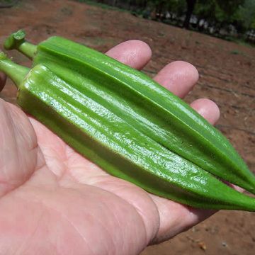 Delele F1 is a medium sized Okra, with dimensions of 13–18 cm long and 18mm - 22 mm thick. Delele F1 has a shiny, straight green hexagonal ribbed fruit that grows on a very tall plant that has resistance to Yellow Vein Mosaic Virus and Leaf Curl Virus. When setting fruits in the cool season, Delele F1 retains most of its length.